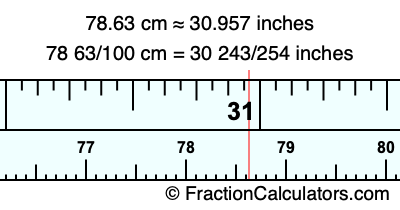As promised above, we also have the answer to 78.63 cm in inches in decimal form. Although the fractional answer above is exact, the decimal answer may be rounded if necessary: