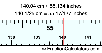 140 1/25 cm = 55 17/127 inches