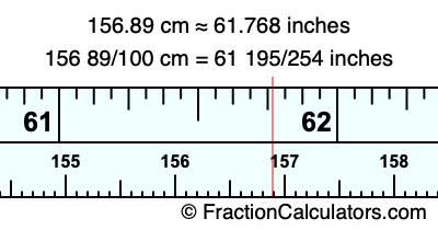 As promised above, we also have the answer to 156.89 cm in inches in decimal form. Although the fractional answer above is exact, the decimal answer may be rounded if necessary: