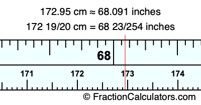 Here is how to convert 172.95 cm to inches. We will give you the fractional answer, the decimal answer, and illustrate the answer on our tape measure.