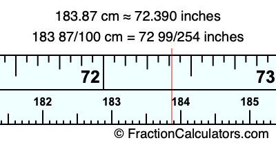 As promised above, we also have the answer to 183.87 cm in inches in decimal form. Although the fractional answer above is exact, the decimal answer may be rounded if necessary: