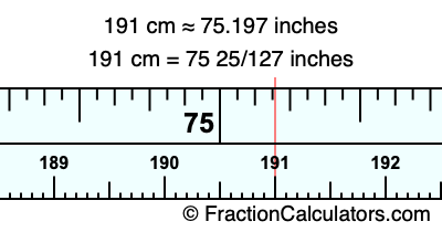 191 cm = 75 25/127 inches