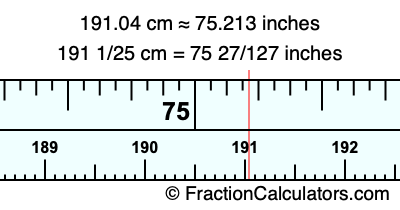 191 1/25 cm = 75 27/127 inches