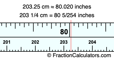 One centimeter is equal to 50/127 inches, and 203.25 as a fraction is 203 1/4. Therefore, to get the fractional answer to 203.25 cm in inches, we multiply 203 1/4 by 50/127 and simplify if necessary.