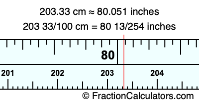 As promised above, we also have the answer to 203.33 cm in inches in decimal form. Although the fractional answer above is exact, the decimal answer may be rounded if necessary: