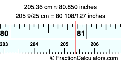 One centimeter is equal to 50/127 inches, and 205.36 as a fraction is 205 9/25. Therefore, to get the fractional answer to 205.36 cm in inches, we multiply 205 9/25 by 50/127 and simplify if necessary.