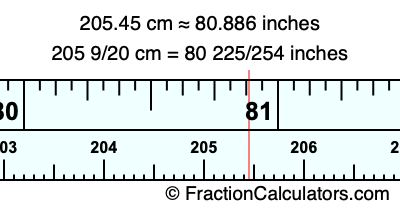 One centimeter is equal to 50/127 inches, and 205.45 as a fraction is 205 9/20. Therefore, to get the fractional answer to 205.45 cm in inches, we multiply 205 9/20 by 50/127 and simplify if necessary.