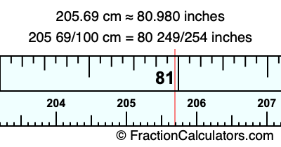 Here is how to convert 205.69 cm to inches. We will give you the fractional answer, the decimal answer, and illustrate the answer on our tape measure.