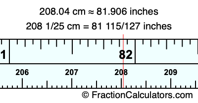 One centimeter is equal to 50/127 inches, and 208.04 as a fraction is 208 1/25. Therefore, to get the fractional answer to 208.04 cm in inches, we multiply 208 1/25 by 50/127 and simplify if necessary.