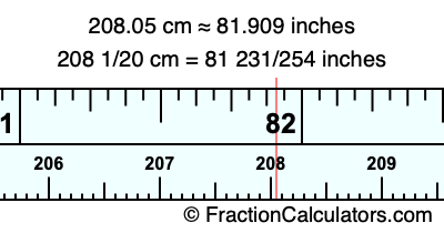 One centimeter is equal to 50/127 inches, and 208.05 as a fraction is 208 1/20. Therefore, to get the fractional answer to 208.05 cm in inches, we multiply 208 1/20 by 50/127 and simplify if necessary.