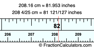 Here is how to convert 208.16 cm to inches. We will give you the fractional answer, the decimal answer, and illustrate the answer on our tape measure.