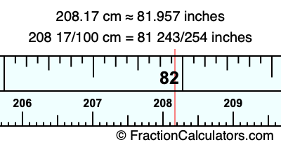 Here is how to convert 208.17 cm to inches. We will give you the fractional answer, the decimal answer, and illustrate the answer on our tape measure.
