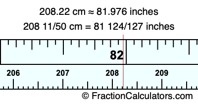 One centimeter is equal to 50/127 inches, and 208.22 as a fraction is 208 11/50. Therefore, to get the fractional answer to 208.22 cm in inches, we multiply 208 11/50 by 50/127 and simplify if necessary.