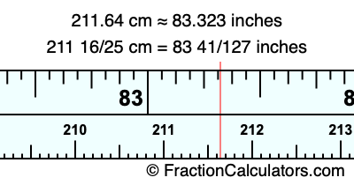 Here is how to convert 211.64 cm to inches. We will give you the fractional answer, the decimal answer, and illustrate the answer on our tape measure.