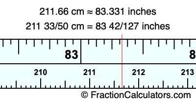 As promised above, we also have the answer to 211.66 cm in inches in decimal form. Although the fractional answer above is exact, the decimal answer may be rounded if necessary: