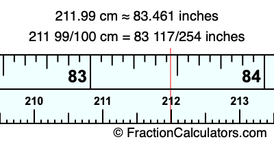 As promised above, we also have the answer to 211.99 cm in inches in decimal form. Although the fractional answer above is exact, the decimal answer may be rounded if necessary: