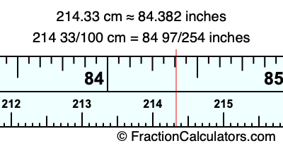 As promised above, we also have the answer to 214.33 cm in inches in decimal form. Although the fractional answer above is exact, the decimal answer may be rounded if necessary: