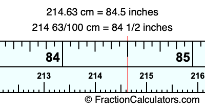 Here is how to convert 214.63 cm to inches. We will give you the fractional answer, the decimal answer, and illustrate the answer on our tape measure.