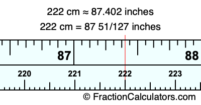222 cm = 87 51/127 inches