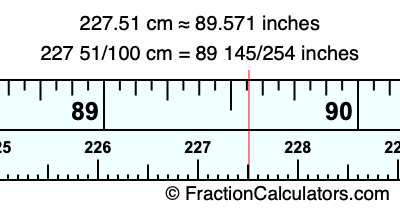 227 51/100 cm = 89 145/254 inches