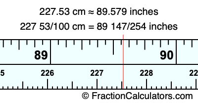 As promised above, we also have the answer to 227.53 cm in inches in decimal form. Although the fractional answer above is exact, the decimal answer may be rounded if necessary: