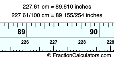 227 61/100 cm = 89 155/254 inches