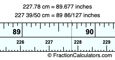 As promised above, we also have the answer to 227.78 cm in inches in decimal form. Although the fractional answer above is exact, the decimal answer may be rounded if necessary: