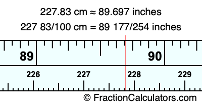 As promised above, we also have the answer to 227.83 cm in inches in decimal form. Although the fractional answer above is exact, the decimal answer may be rounded if necessary:
