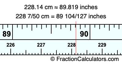 One centimeter is equal to 50/127 inches, and 228.14 as a fraction is 228 7/50. Therefore, to get the fractional answer to 228.14 cm in inches, we multiply 228 7/50 by 50/127 and simplify if necessary.