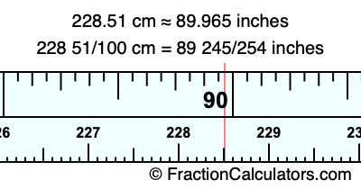 As promised above, we also have the answer to 228.51 cm in inches in decimal form. Although the fractional answer above is exact, the decimal answer may be rounded if necessary: