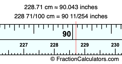 As promised above, we also have the answer to 228.71 cm in inches in decimal form. Although the fractional answer above is exact, the decimal answer may be rounded if necessary: