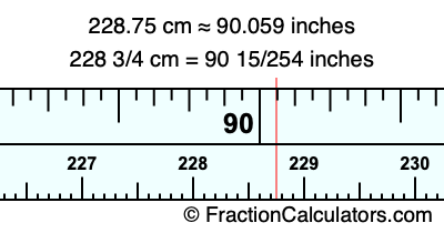 Here is how to convert 228.75 cm to inches. We will give you the fractional answer, the decimal answer, and illustrate the answer on our tape measure.
