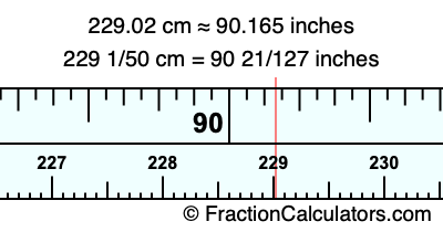 One centimeter is equal to 50/127 inches, and 229.02 as a fraction is 229 1/50. Therefore, to get the fractional answer to 229.02 cm in inches, we multiply 229 1/50 by 50/127 and simplify if necessary.