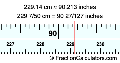 One centimeter is equal to 50/127 inches, and 229.14 as a fraction is 229 7/50. Therefore, to get the fractional answer to 229.14 cm in inches, we multiply 229 7/50 by 50/127 and simplify if necessary.
