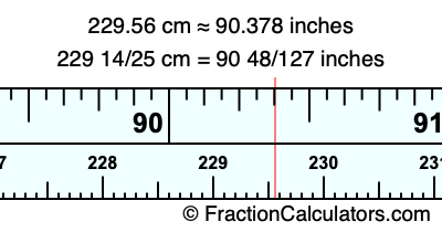 Here is how to convert 229.56 cm to inches. We will give you the fractional answer, the decimal answer, and illustrate the answer on our tape measure.