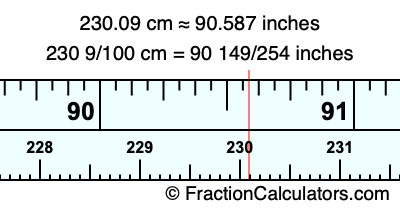 230 9/100 cm = 90 149/254 inches