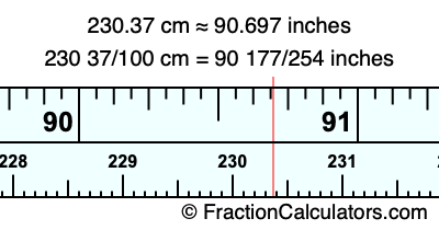 230 37/100 cm = 90 177/254 inches