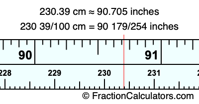 230 39/100 cm = 90 179/254 inches
