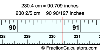 Here is how to convert 230.4 cm to inches. We will give you the fractional answer, the decimal answer, and illustrate the answer on our tape measure.