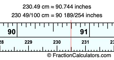 As promised above, we also have the answer to 230.49 cm in inches in decimal form. Although the fractional answer above is exact, the decimal answer may be rounded if necessary:
