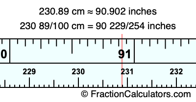 230 89/100 cm = 90 229/254 inches