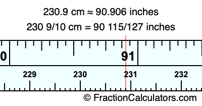 Here is how to convert 230.9 cm to inches. We will give you the fractional answer, the decimal answer, and illustrate the answer on our tape measure.