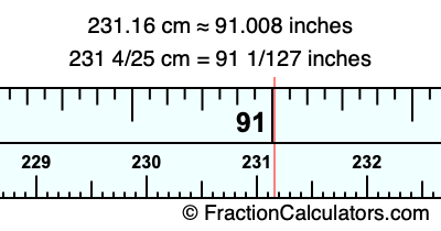 Here is how to convert 231.16 cm to inches. We will give you the fractional answer, the decimal answer, and illustrate the answer on our tape measure.