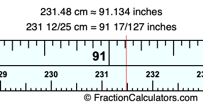 231 12/25 cm = 91 17/127 inches