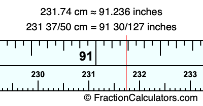 231.74 cm = 91 30/127 inches
