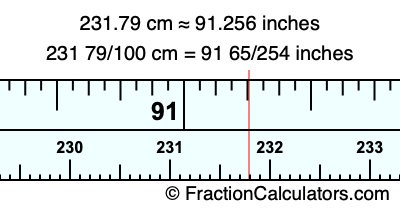 231 79/100 cm = 91 65/254 inches