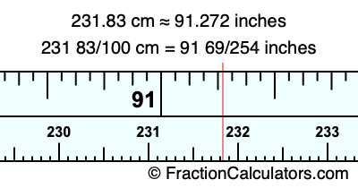 231 83/100 cm = 91 69/254 inches