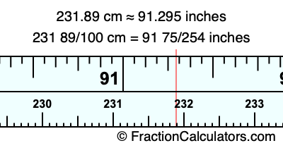 231.89 cm = 91 75/254 inches