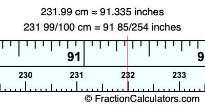 Here is how to convert 231.99 cm to inches. We will give you the fractional answer, the decimal answer, and illustrate the answer on our tape measure.