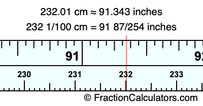 232 1/100 cm = 91 87/254 inches